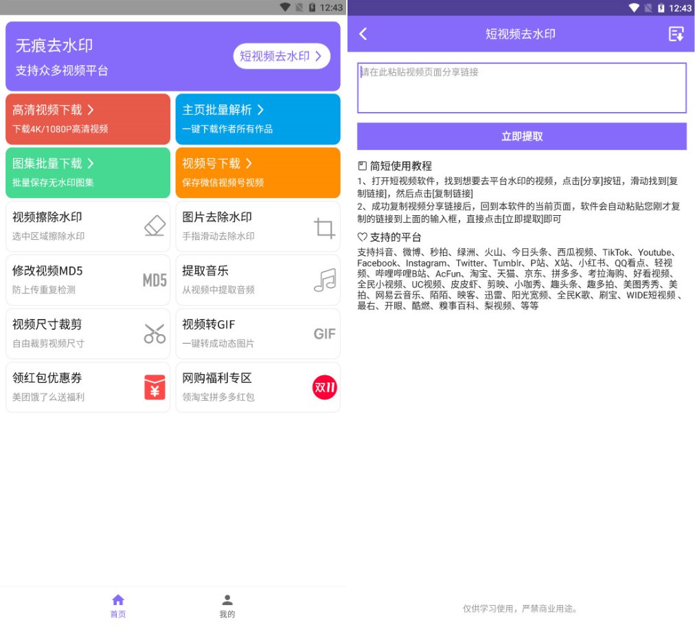 下载王APP是一款专用于短视频去水印下载和视频制作的软件,各大平台短视频去水印解析下载,同时软件还支持视频的编辑以及一键去除图片的水印和瑕疵,轻松删除图片中不需要的对象。